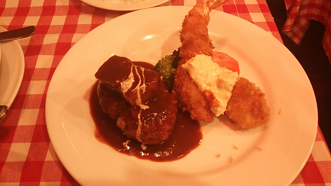 パスタ食べたい気持ちとか言って、ハンバーグやステーキのお店だったので行ってみて気付く四郎…(  ̄▽ ̄)